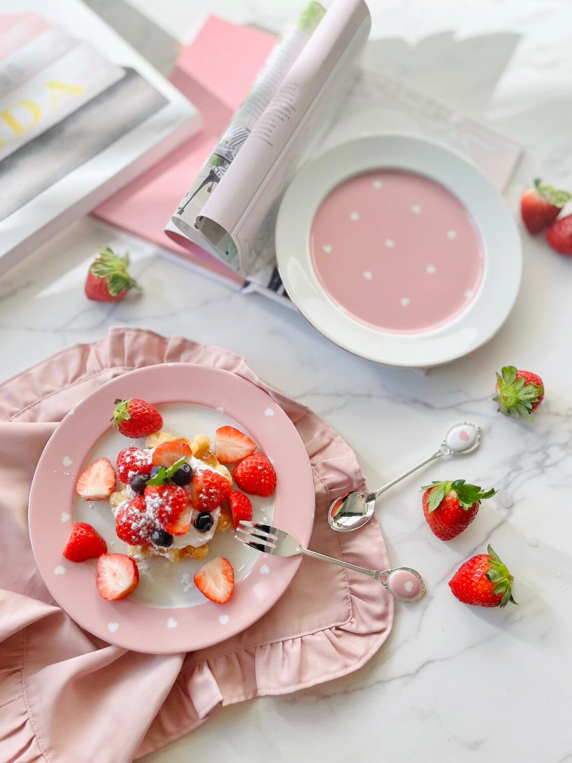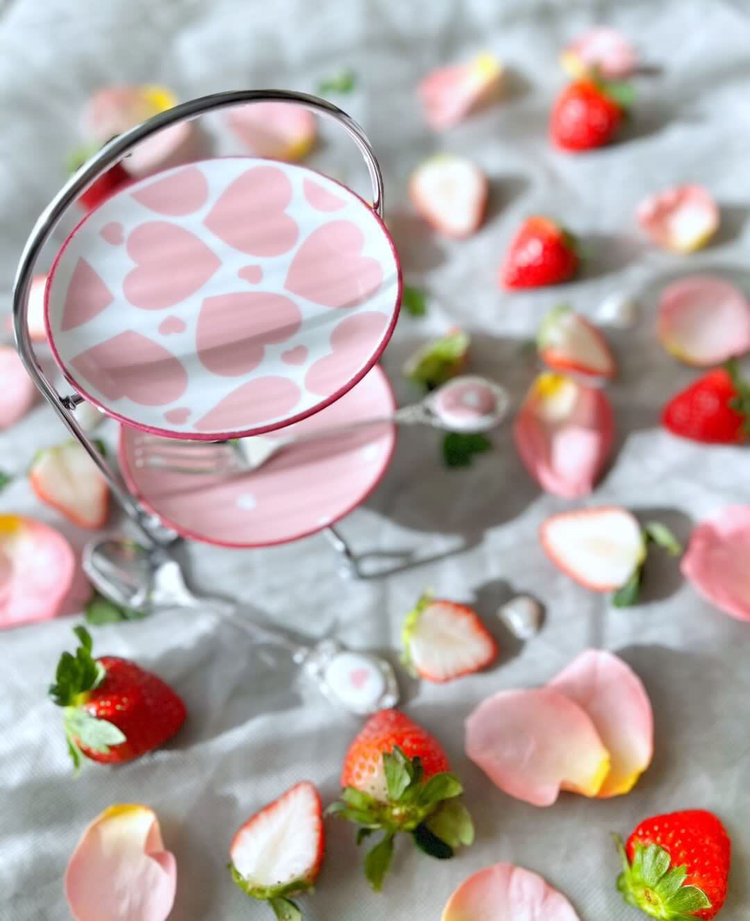 転写紙が食器に貼られた時に、それぞれのハートが全体とバランスよくなるよう、ハートの大きさも1ミリ単位で、デザイン、調整を行いました。
